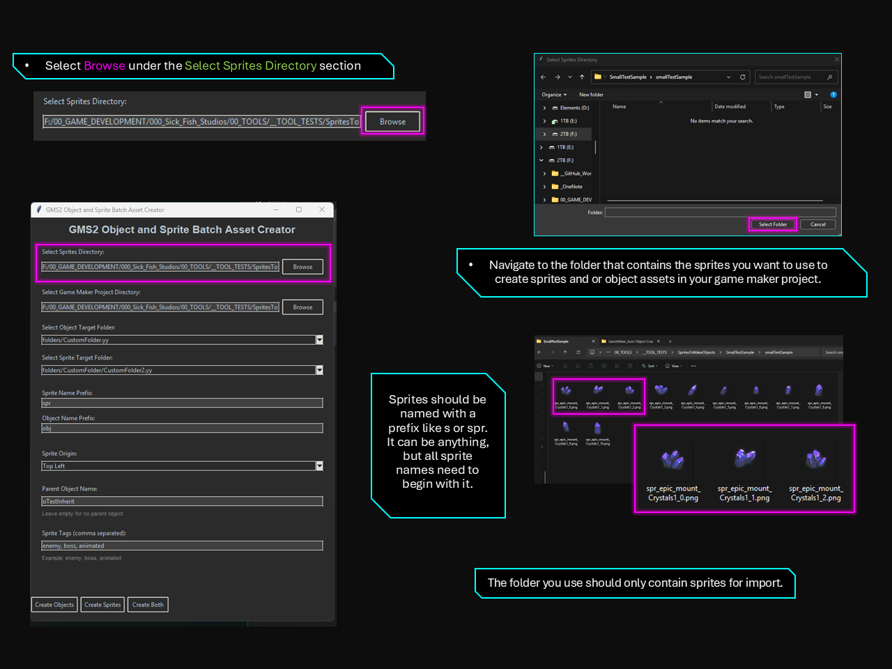- Add sprites to your Game Maker project from any directory.